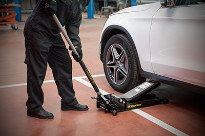 A dual-pump trolley jack capable of lifting 3000kg with an ergonomic foot pedal that lets you raise and lower vehicles with minimal effort. It has a low-profile design that gives it the capability of fitting underneath low chasis vehicles.