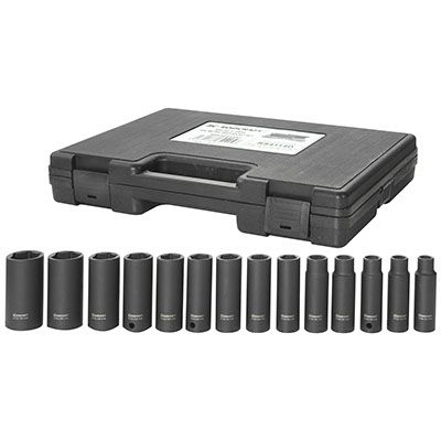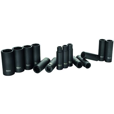Impact sockets Chrome-molybdenum Steel and Phosphate manganese surface finish for extreme wear resistance, easy to read laser etched marking with output size, and model number. Impact sockets are designed to be used with impact and ratchet wrenches in high speed, high torque applications. Structurally, sockets are built to be soft and ductile so that they can easily deform and reform due to the immense stress exerted by the hammering action of an impact wrench. Designed with a cross hole in the handle end, compatible with a retaining pin and ring, or locking pin anvil.