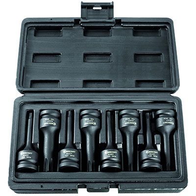 Impact sockets Chrome-molybdenum Steel and Phosphate manganese surface finish for extreme wear resistance, easy to read laser etched marking with output size, and model number. Impact sockets are designed to be used with impact and ratchet wrenches in high speed, high torque applications. Structurally, sockets are built to be soft and ductile so that they can easily deform and reform due to the immense stress exerted by the hammering action of an impact wrench. Designed with a cross hole in the handle end, compatible with a retaining pin and ring, or locking pin anvil.